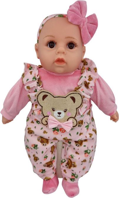 Dockan är 45 cm lång, vilket gör den till en perfekt storlek för barn att bära och krama.