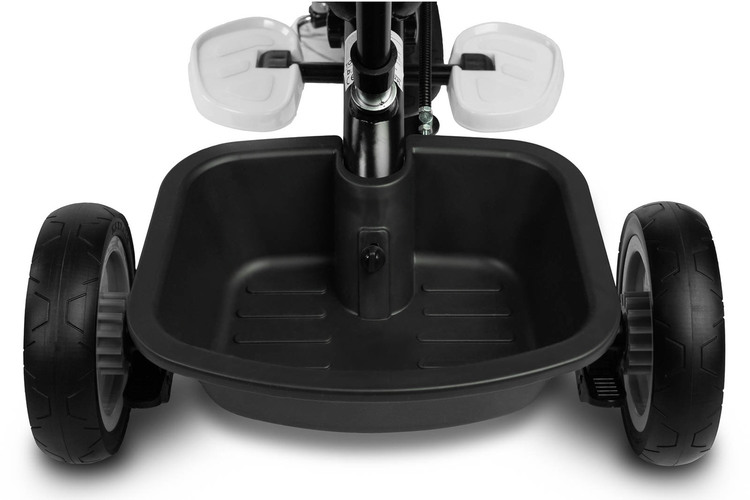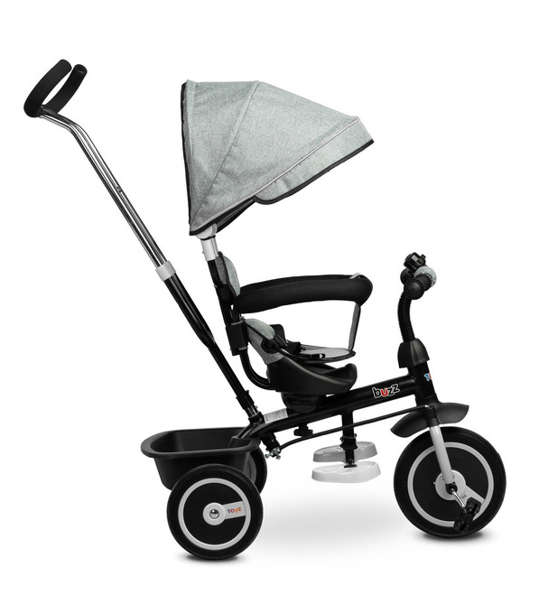BUZZ-cykeln är en av våra många innovativa lösningar som kombinerar en trehjuling med en barnvagn. Den är utrustad med bälten och ett rymligt, hopfällbart soltak som skyddar småbarnet från solen. I korgen på baksidan kan du lägga olika småsaker och leksaker för barnet eller en shoppingpåse. Cykeln har en 3-stegs höjdjustering av fotstödet och en frigång. För föräldrarna är den justerbara höjden på handtaget en bekvämlighet.
