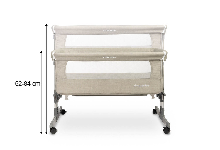 Säkerheten är alltid högsta prioritet när det kommer till produkter för spädbarn. CARETERO Sleep2Gether är utrustad med robusta fästremmar som säkrar sängen vid din egen sängram, vilket förhindrar att den glider iväg. Den lätta men hållbara aluminiumkonstruktionen gör den enkel att flytta tack vare de integrerade hjulen, samtidigt som de inbyggda låsen ser till att sängen står stadigt när den väl är på plats. Det är en bedside crib som verkligen tänker på föräldrarnas vardag.