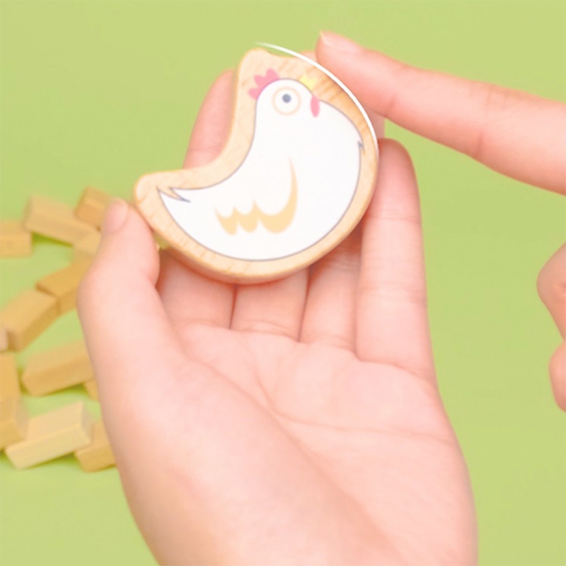 Ett fantastiskt träsällskapsspel för hela familjen från det välkända Classic World-märket. Enkla regler, logiskt tänkande och roligt för alla åldrar är spelets främsta egenskaper. Bygg en vägg med speciellt utformade block. Placera en höna högst upp och ta sedan bort tegelstenarna en efter en. När väggen rasar är spelet slut. Under spelets gång lär sig barnet koncentration, strategiskt tänkande och problemlösning, samt förbättrar sin hand-ögon-koordination.